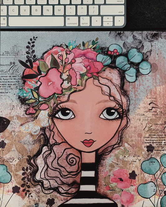 Vibrant floral desk mat, large mouse pad, custom original art by NicCreates